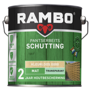 Rambo Pantserbeits voor schuttingen heeft een natuurlijk matte uitstraling, is vochtregulerend, waterafstotend en versterkt de nerftekening. Het hout van de schutting wordt met twee lagen optimaal beschermd en blijft langer mooi. Door de snelle opdroogtijd (van slechts 1 uur) kun je de klus binnen een dag afmaken. Makkelijk en drupvrij aan te brengen.